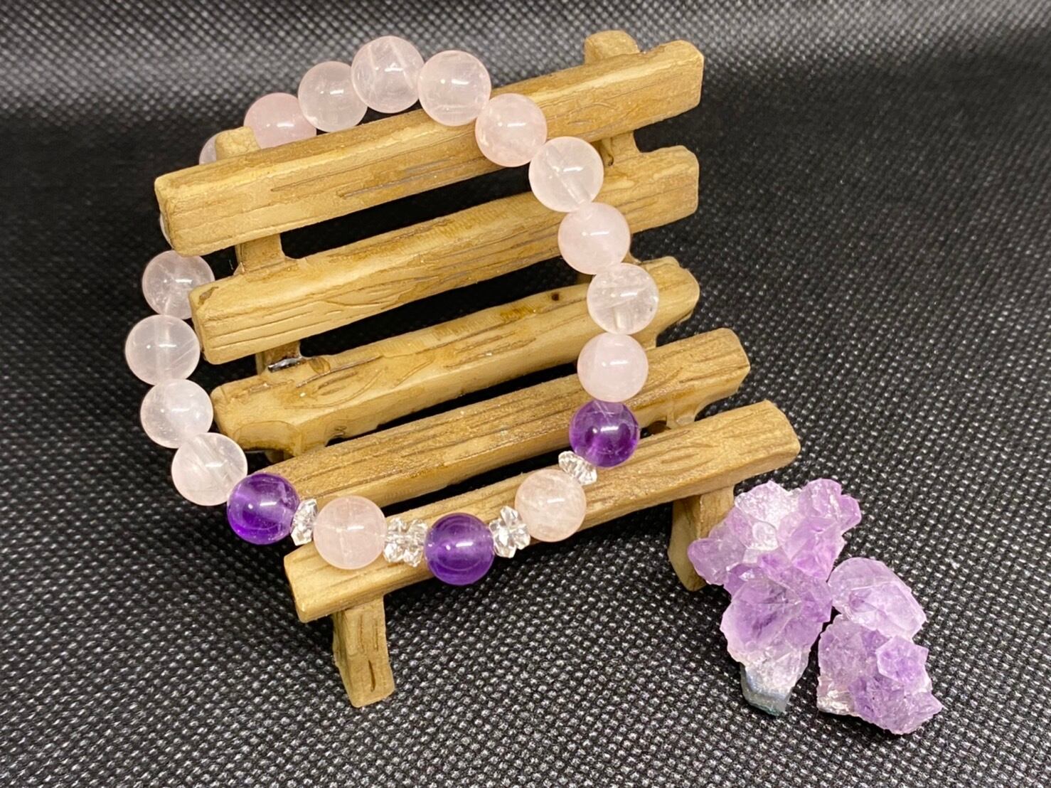 愛と癒しの輝き:ローズクオーツ、モルガナイト、アメジストの天然石ブレスレット