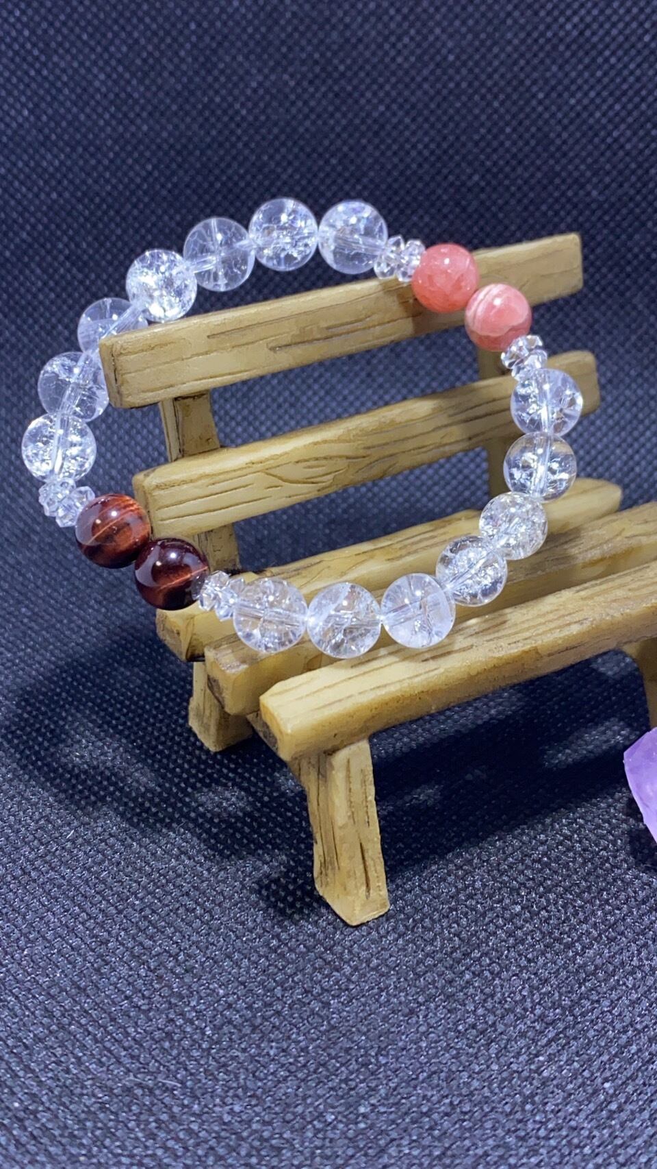 輝く天然石ブレスレット:レッドタイガー、ロードクロサイト、クラック水晶