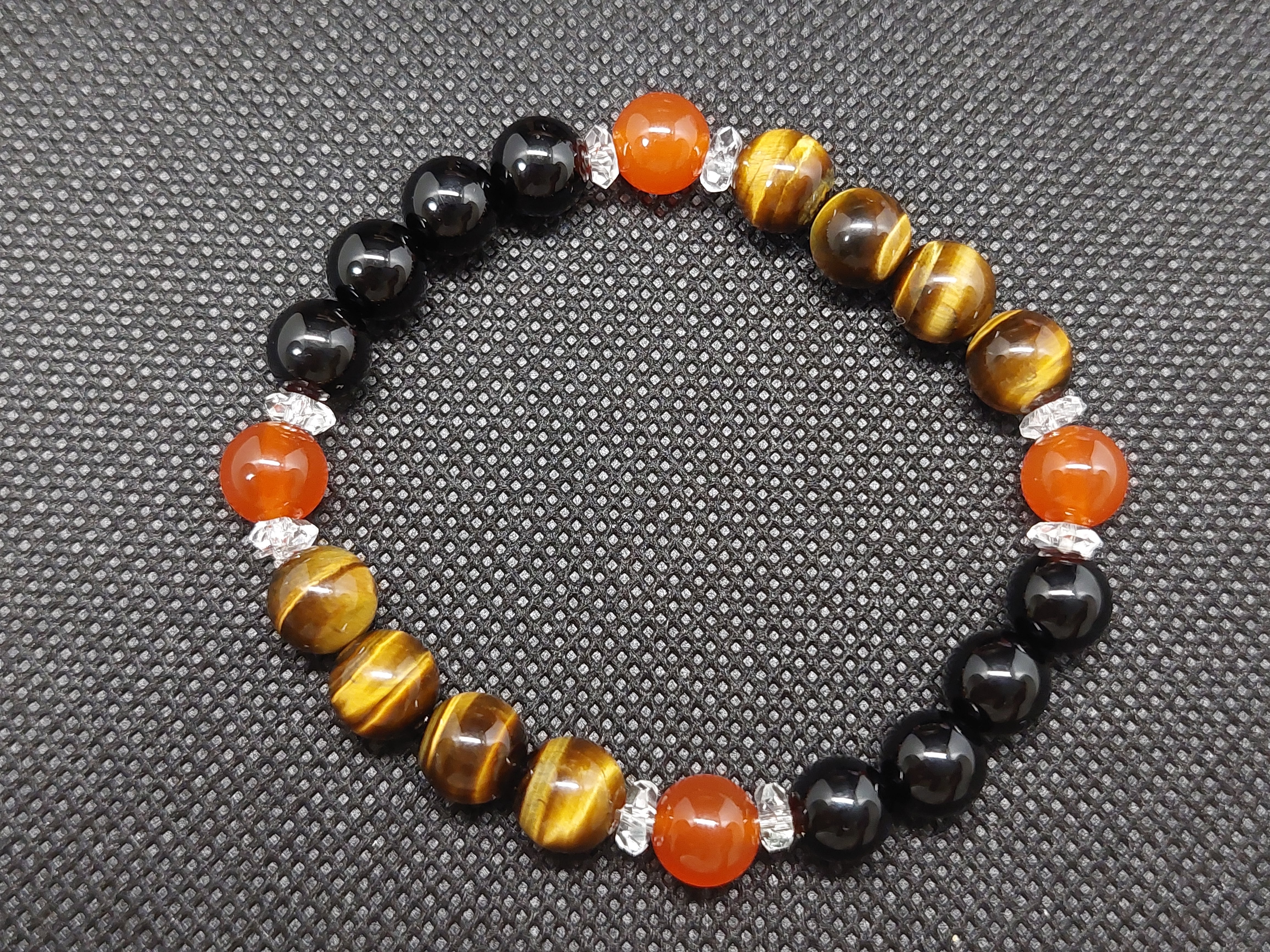 ポジティブなエネルギー タイガーアイ&カーネリアン&オニキスパワーストーンブレスレット